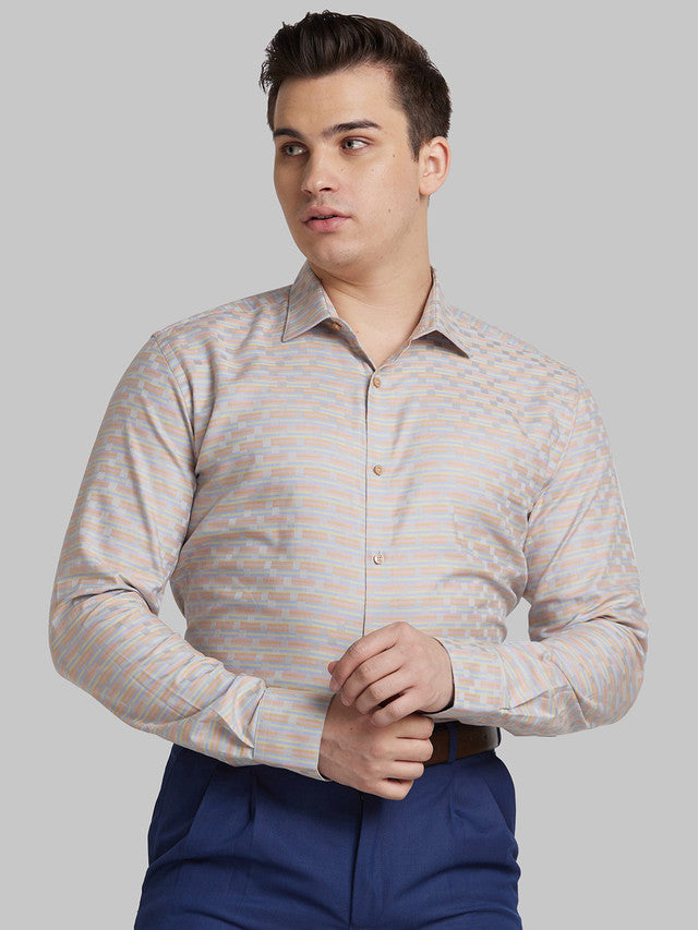 Park Avenue Men Grey Self Design Slim Fit Full Sleeve Semi Cut Away Collar Shirt