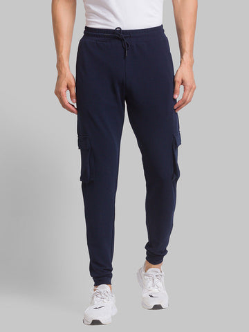 Parx Men Blue Solid Jogger Fit Polyester Blend Jogger