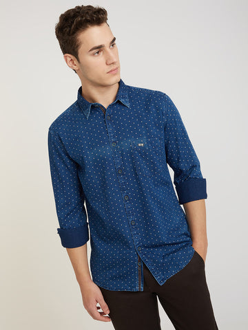 Men Blue Slim Fit Print Cotton Full Sleeve Shirts
