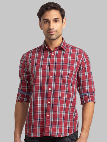Parx Men Red Slim Fit Checks Full Sleeve Cutaway Collar Shirt