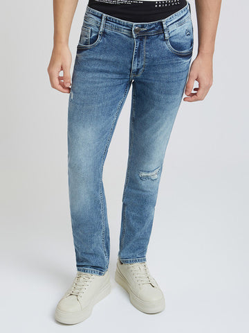 Men Blue Slim Tapered Fit Twill Cotton Blend Jeans