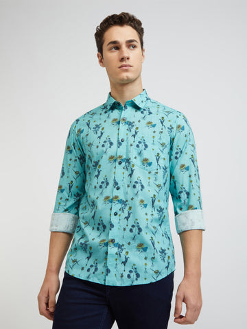 Colorplus Men Blue Printed Regular Fit Full Sleeve Spread Collar Shirt
