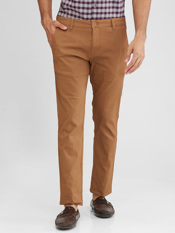Parx Khaki Printed Super Slim Fit Cotton Blend Trouser