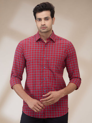 Colorplus Men Red Checks Regular Fit Cotton Casual Shirts