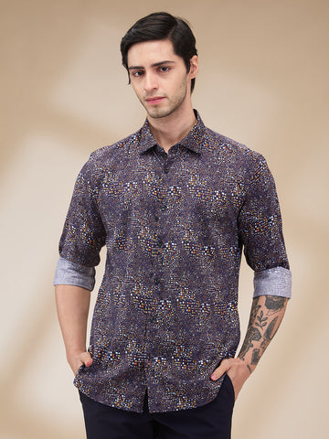 Park Avenue Men Blue Printed Slim Fit Cotton Casual Shirt