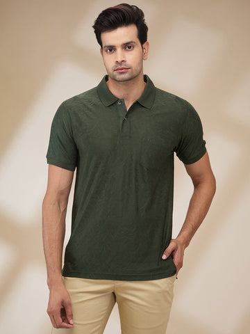 Colorplus Men Green Jacquard Regular Fit Cotton T-Shirt