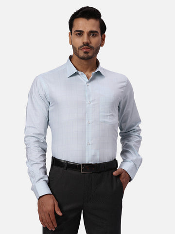 Park Avenue Blue Checks Slim Fit Cotton Formal Shirt