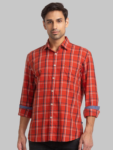 Parx Men Red Checks Slim Fit Cotton Casual Shirt