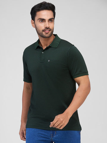 Raymond Men Green Jacquard Contemporary Fit Cotton T-Shirt