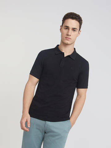 Parx Men Black Solid Regular Fit Cotton Blend T-Shirt