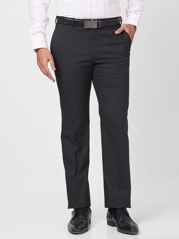 Park Avenue Men Grey Checkered Super Slim Fit Trouser