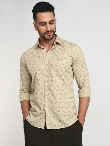 Parx Men Brown Printed Slim Fit Cotton Casual Shirt