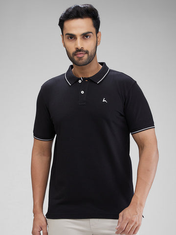 Parx Black Structure Regular Fit Cotton Blend T-Shirt