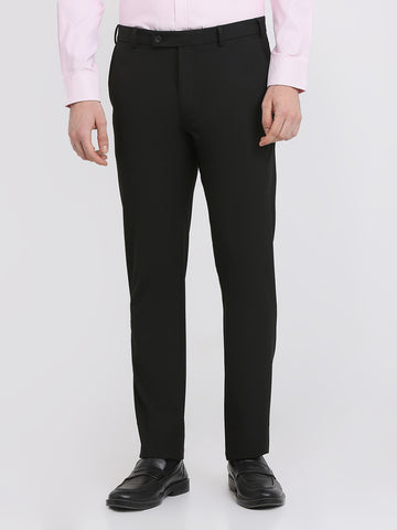 Park Avenue Men Black Solid Slim Fit Polyester Blend Trouser