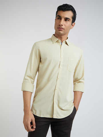 Park Avenue Men Yellow Solid Slim Fit Cotton Blend T-Shirt