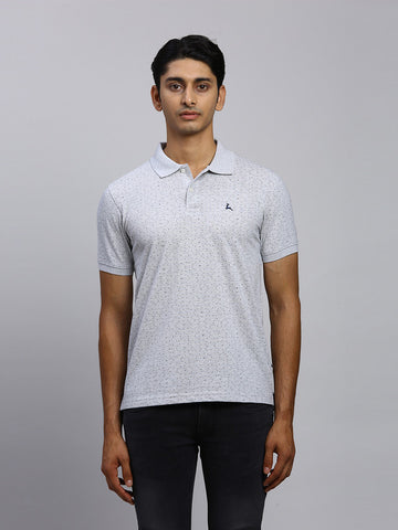 Parx Men Grey Printed Regular Fit Half Sleeve Polo Neck T-Shirt