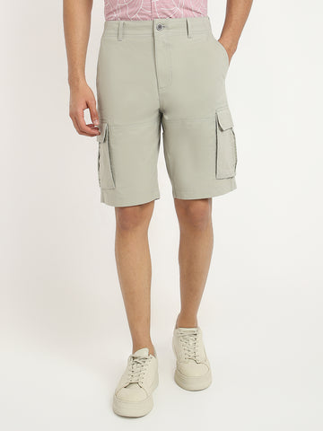 Parx Men Grey Solid Regular Fit Cotton Blend Shorts