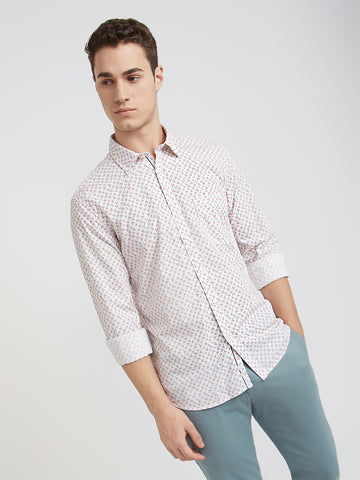 Colorplus Men White Printed Tailored Fit Cotton Casual Shirt