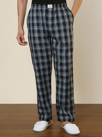 Sleepz Men Black Checks Regular Fit Cotton Pyjama