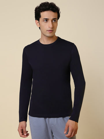 Sleepz Men Blue Solid Regular Fit Cotton Blend T-Shirt