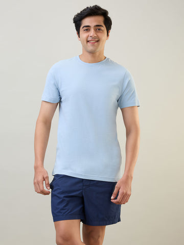 Sleepz Men Blue Solid Regular Fit Cotton Blend T-Shirt