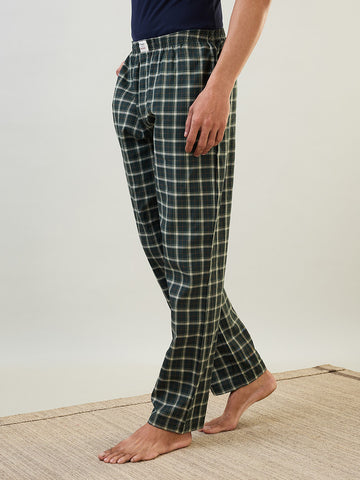 Sleepz Men Green Checks Regular Fit Cotton Pyjama