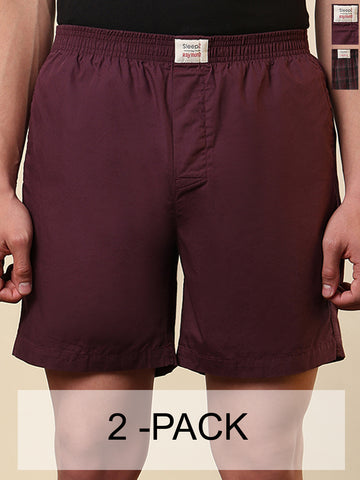Sleepz Men Maroon Solid Regular Fit Cotton Boxer
