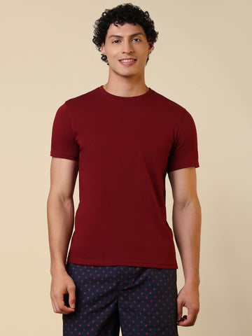 Sleepz Men Maroon Solid Regular Fit Cotton T-Shirt