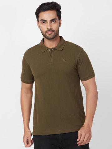Parx Men Green Regular Fit Solid Polo Neck T-Shirt