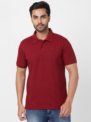 Parx Men Red Regular Fit Solid Polo Neck T-Shirt