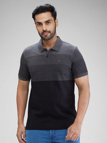 Parx Black Yarn Dyed Regular Fit Cotton T-Shirt