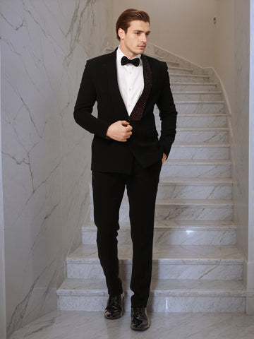 Ethnix by Raymond Men Black Embroidery Tailored fit Polyster Blend Suit