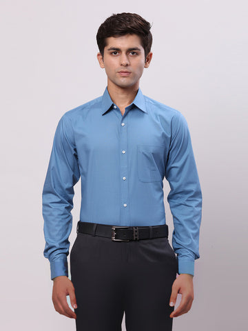 Raymond Blue Solid Slim Fit Cotton Formal Shirt