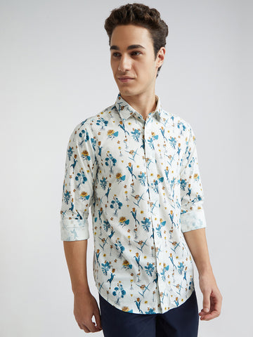 Colorplus White Printed Contemporary Fit Cotton Casual Shirt