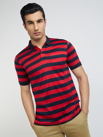 Parx Men Red Yarn Dyed Regular Fit Cotton T-Shirt
