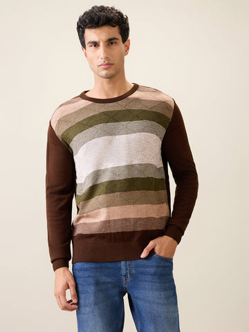 Park Avenue Men Brown Jacquard Regular Fit Acrylic Blend Sweaters