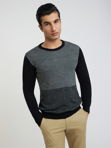 Men Black Wrapper Acrylic Wool Blend Round Collar Sweaters