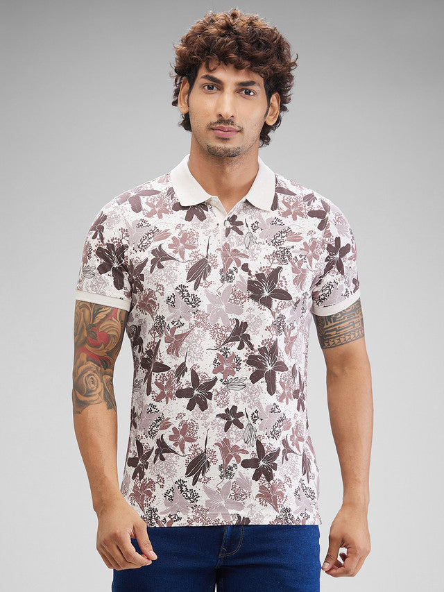 Parx Beige Printed Regular Fit Cotton T-Shirt