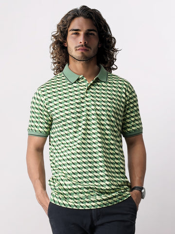 Park Avenue Men Green Printed Slim Fit Cotton Blend T-Shirt