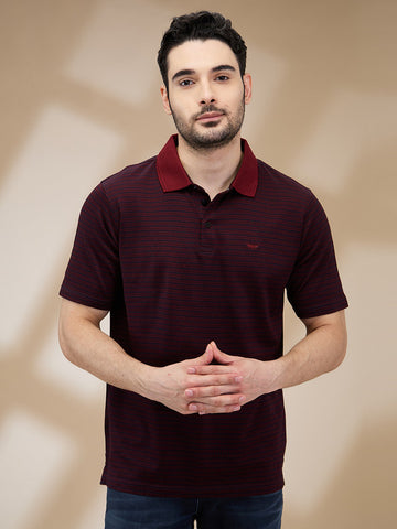 Park Avenue Men Red Structure Slim Fit Cotton T-Shirt