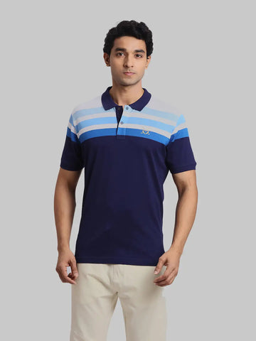 Parx Men Blue Regular Fit Solid Polo Neck T-Shirt