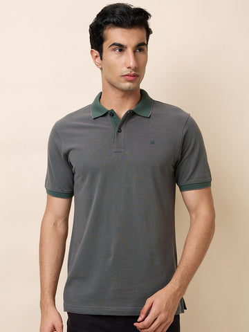 Raymond Men Green Structure Modern Fit Cotton T-Shirt