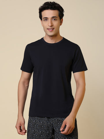 Sleepz Men Blue Solid Regular Fit Cotton Blend T-Shirt