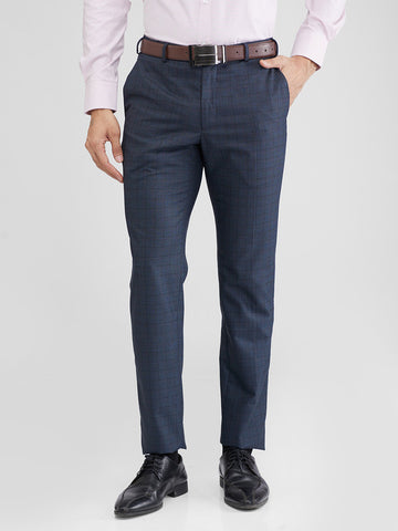 Park Avenue Men Blue Checks Smart Fit Polyester Blend Trouser
