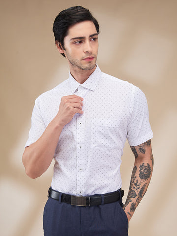 Park Avenue Men White Printed Regular Fit Cotton Formal Shirt