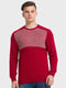 ColorPlus Men Red Jacquard Tailored Fit Acrylic Blend Full Sleeve V Neck Sweater