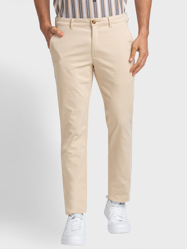 2. Colorplus Beige Solid Piece Dyed Contemporary Fit Cotton Blend Trouser