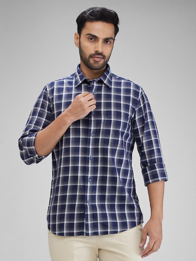 Colorplus Blue Checks Regular Fit Cotton Casual Shirt