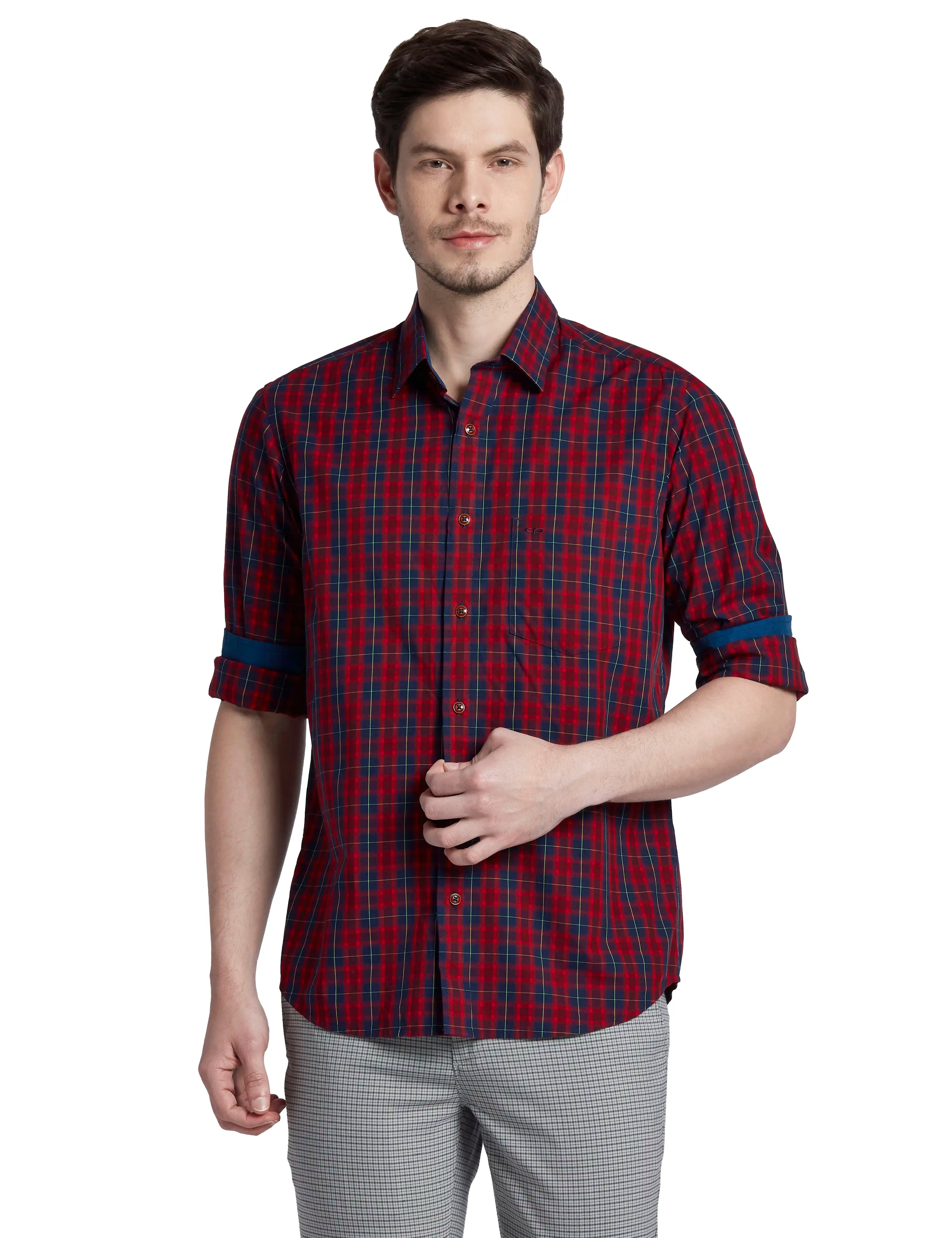 2. ColorPlus Men Red Tailored Fit Checks Cotton Full Sleeve Shirts