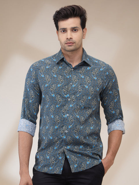 Colorplus Men Grey Printed Regular Fit Cotton Printed Casual Shirt